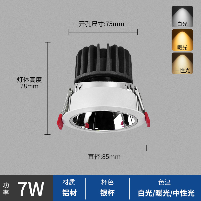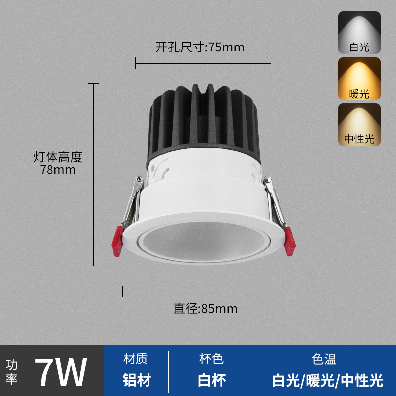 - Power: White Cup 7W, Hole Opening 75mm, Surface 85mm