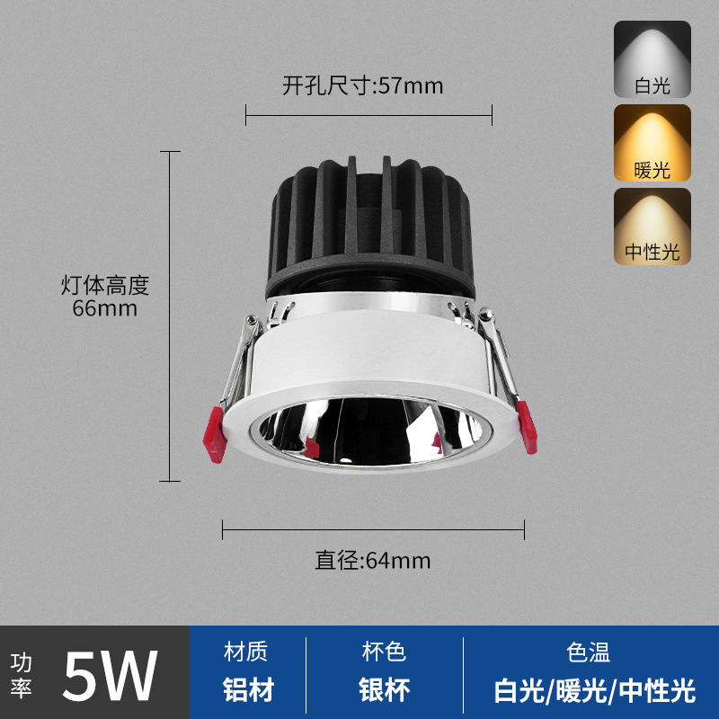 - Power: Small Silver Cup 5W, Hole Opening 57mm, Surface 64mm