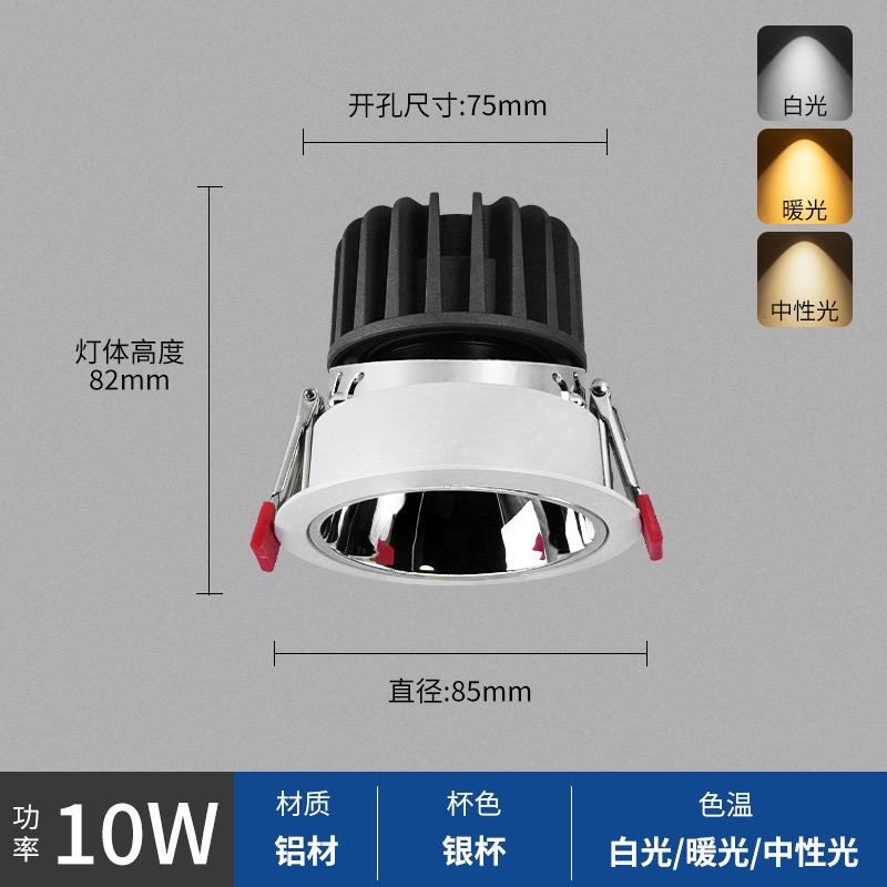 - Power: White Cup 10W, Hole Opening 75mm, Surface 85mm