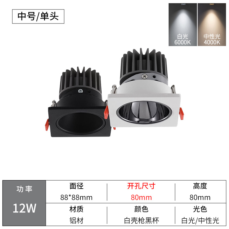 - Power: Single White Shell 12W, Diameter 88*88, Cut-out 80mm