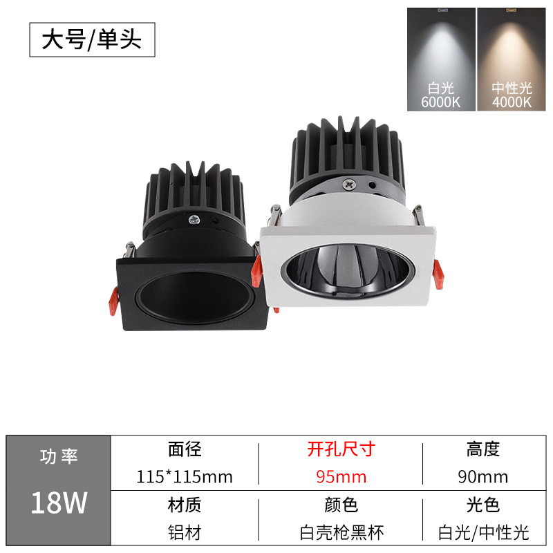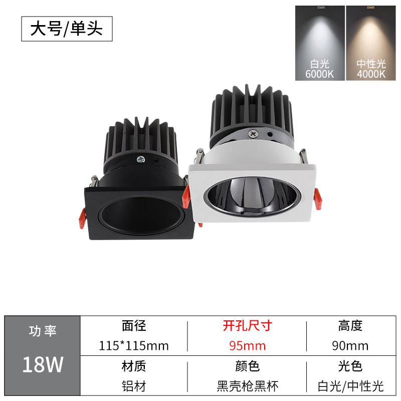 - Power: Single Black Shell 18W, Diameter 115*115, Cut-out 95mm