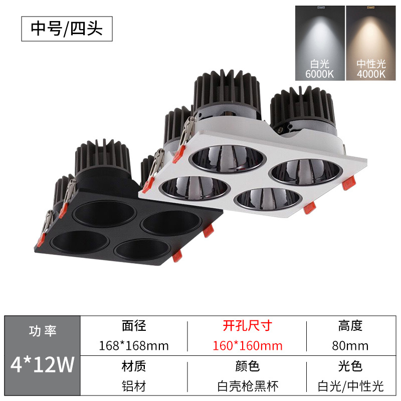 - Power: Quad White Shell 4*12W, Diameter 168*168, Cut-out 160*160mm