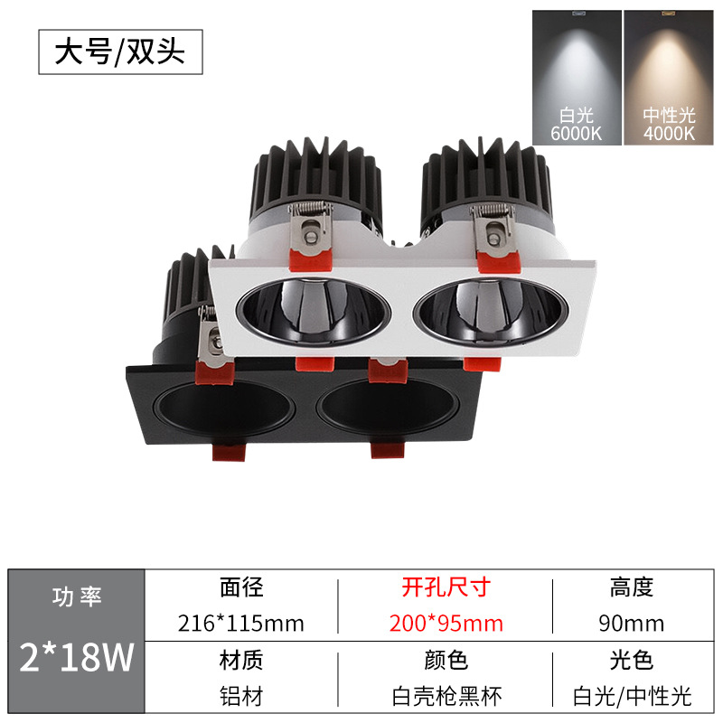 - Power: Dual White Shell 2*18W, Diameter 216*115, Cut-out 200*95mm