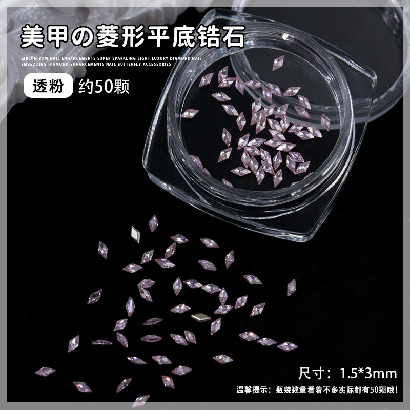 - 規格:粉色1.5*3菱形平底鋯石【50顆】