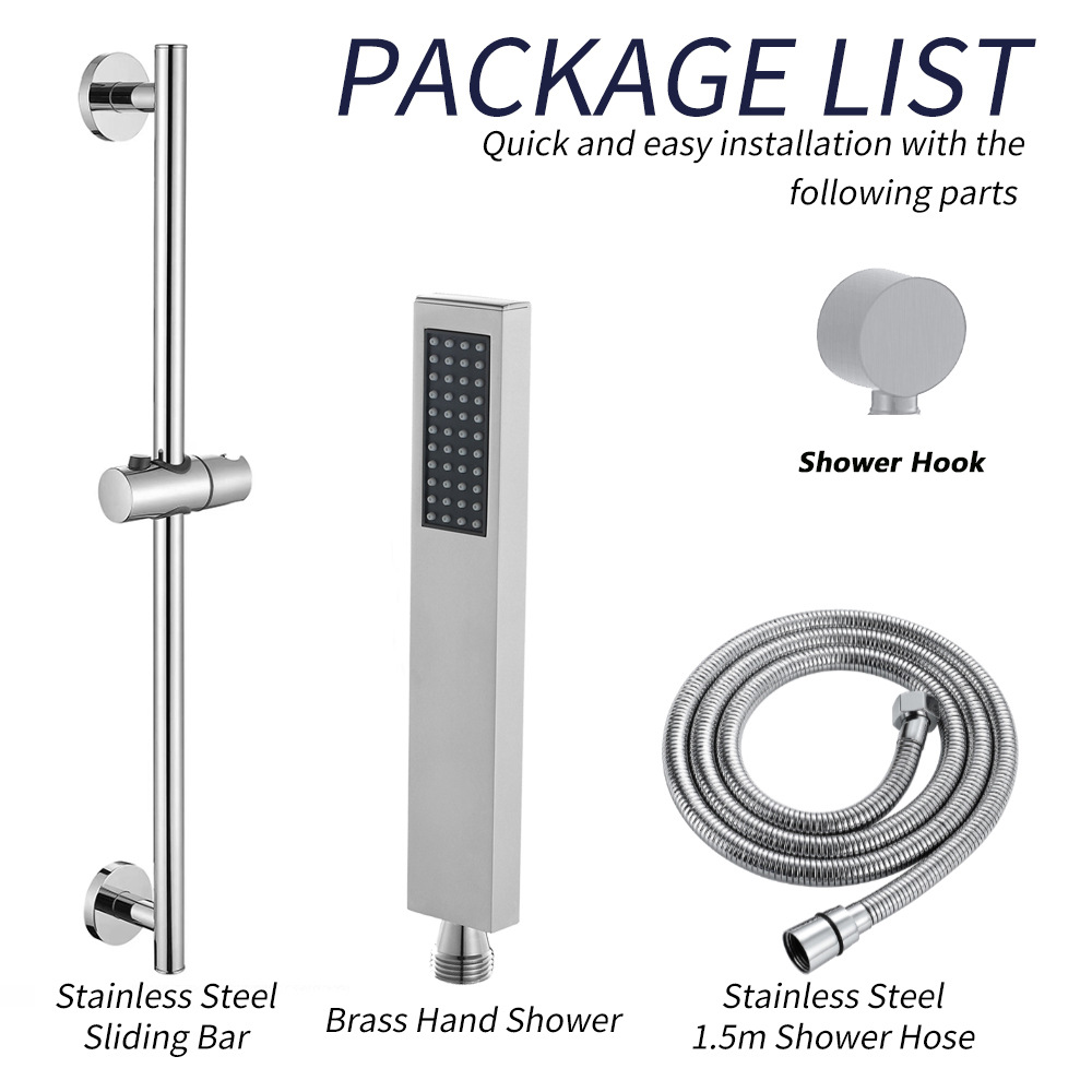 - 規格:圓形升降杆配方形銅手持(帶進水座)套裝鍍鉻