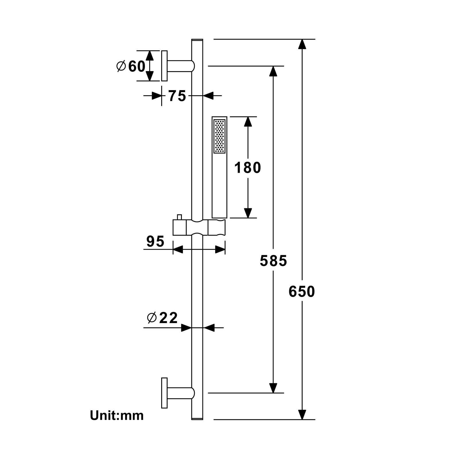 - 規格:圓形升降杆配方形銅手持(帶進水座)套裝黑色
