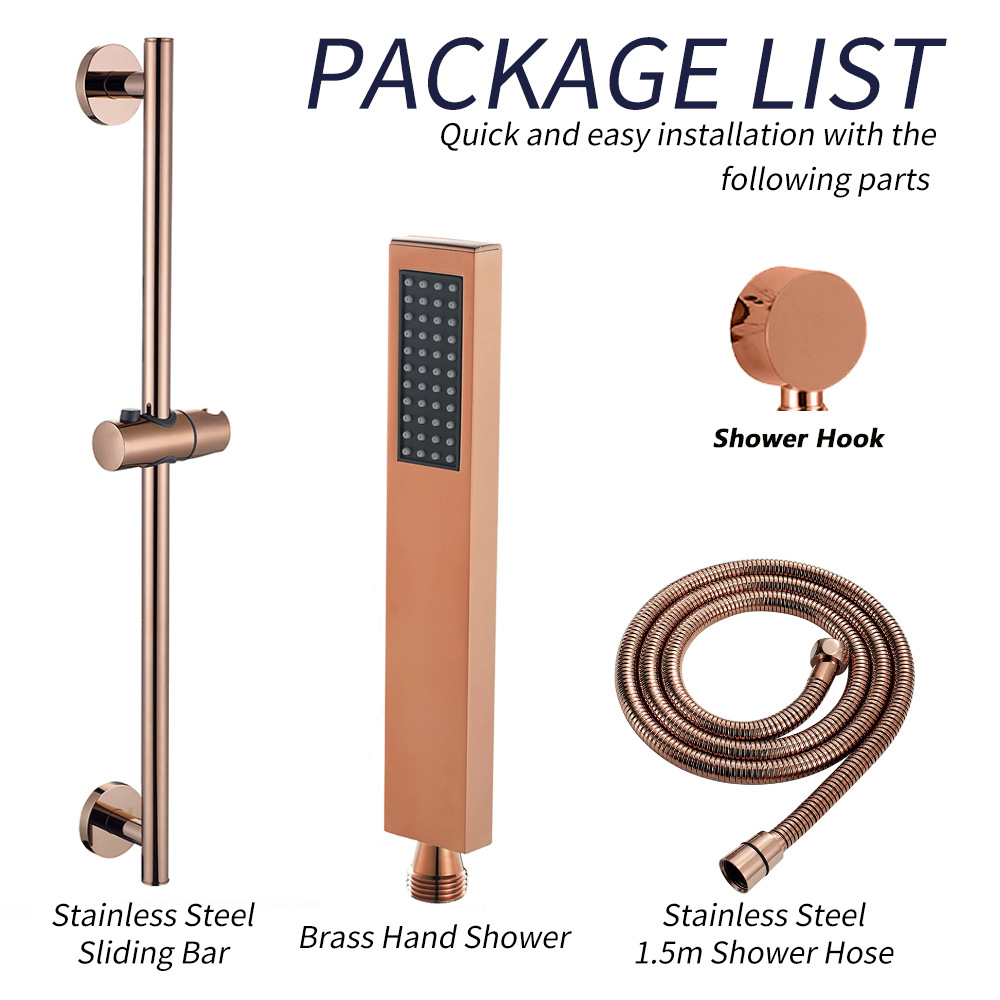 - 規格:圓形升降杆配方形銅手持(帶進水座)套裝玫瑰金