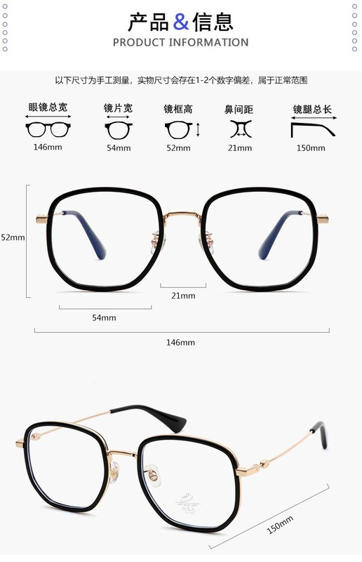 - 鏡片:無度數平光鏡【防藍光】