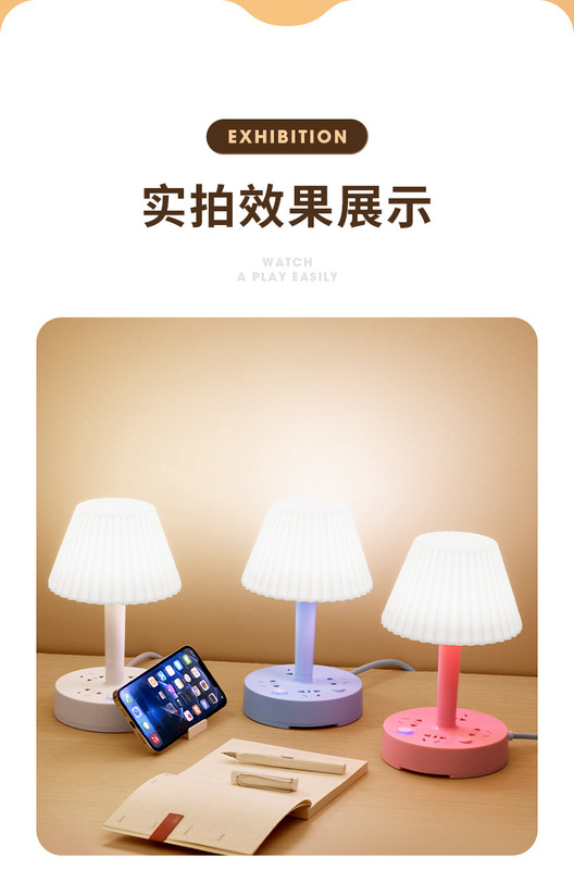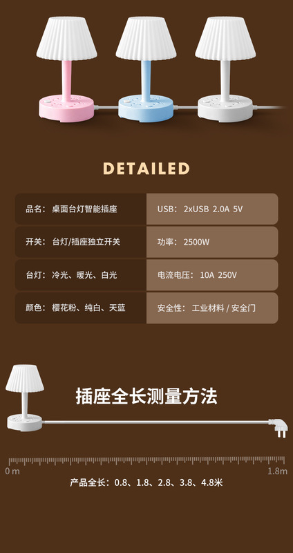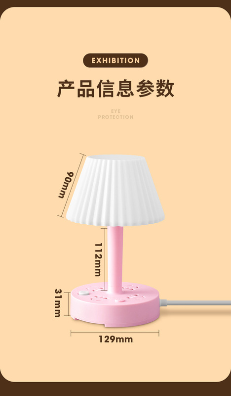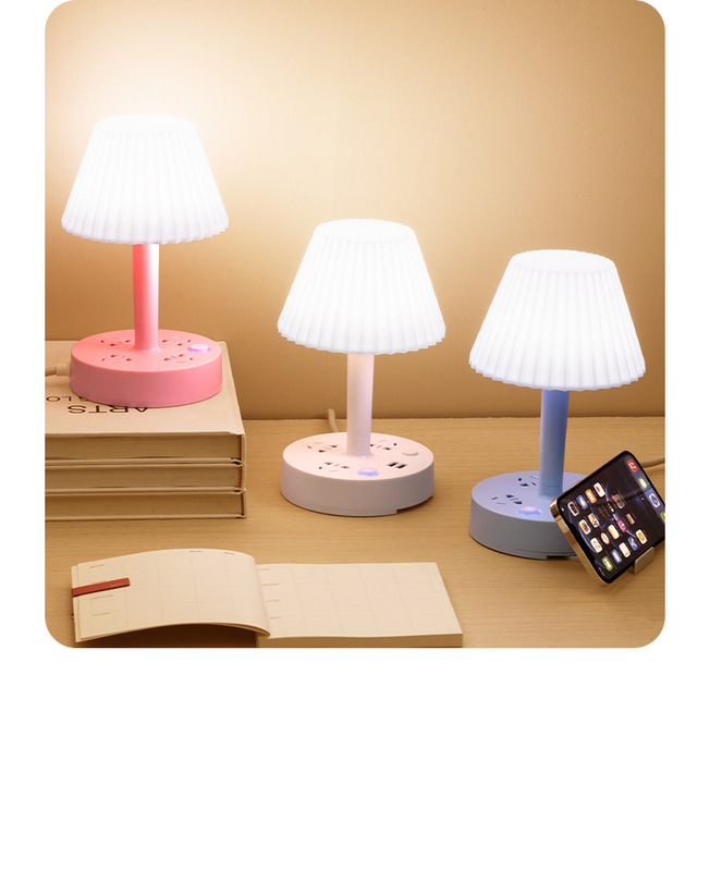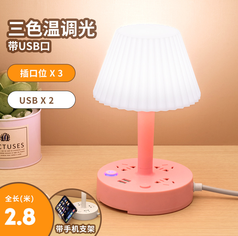 - Model: 2.8m - 3 Color Temperature Desk Lamp (Cherry Pink) + 3 Socket Positions + 2 USB Ports (with Mobile Phone Stand)