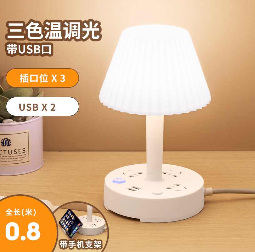 - Model: 2.8m - 3 Color Temperature Desk Lamp (Pure White) + 3 Socket Positions + 2 USB Ports (with Mobile Phone Stand)