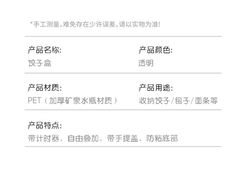 - Specification: Double-layer dumpling box [one outer frame + two inner drawers]