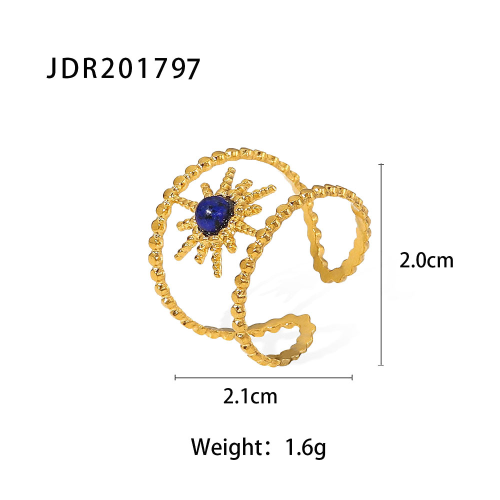 - 樣式:雙排八芒星鑲嵌半寶石戒指