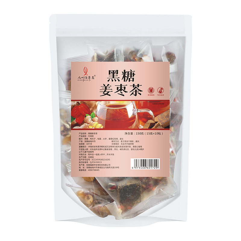 - Packaging Specification: Black Sugar Ginger Jujube Tea 6 Ingredients 150g Bag