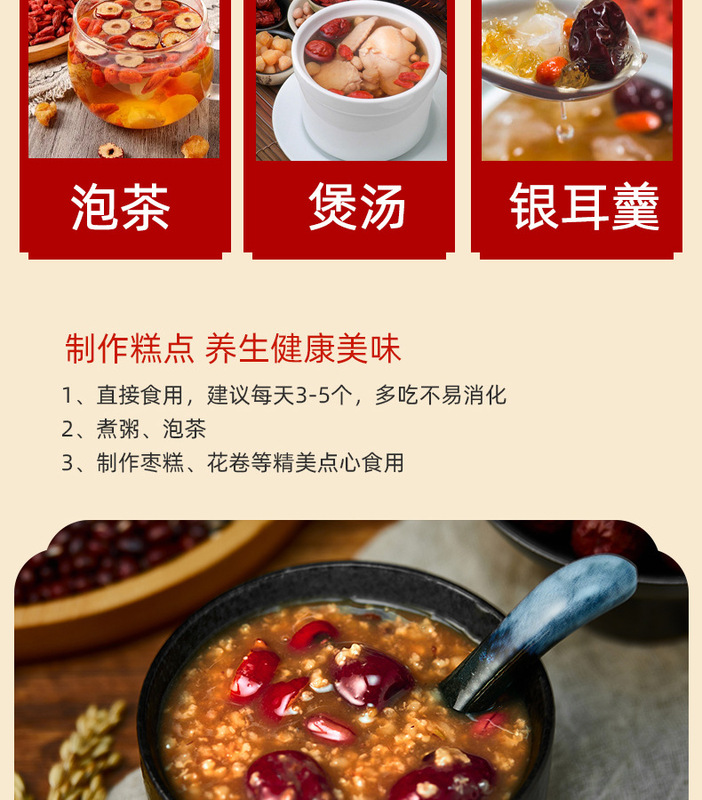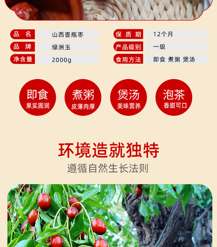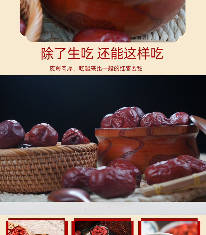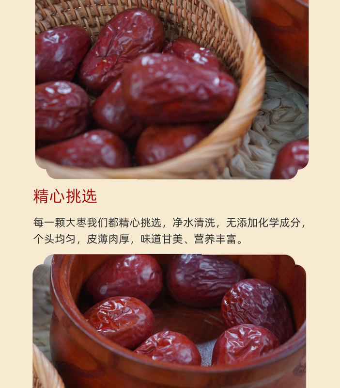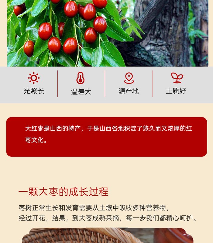 - Taste and texture: Sweet in taste, thick and chewy jujube meat, thin skin, dense meat, large fruit, small core