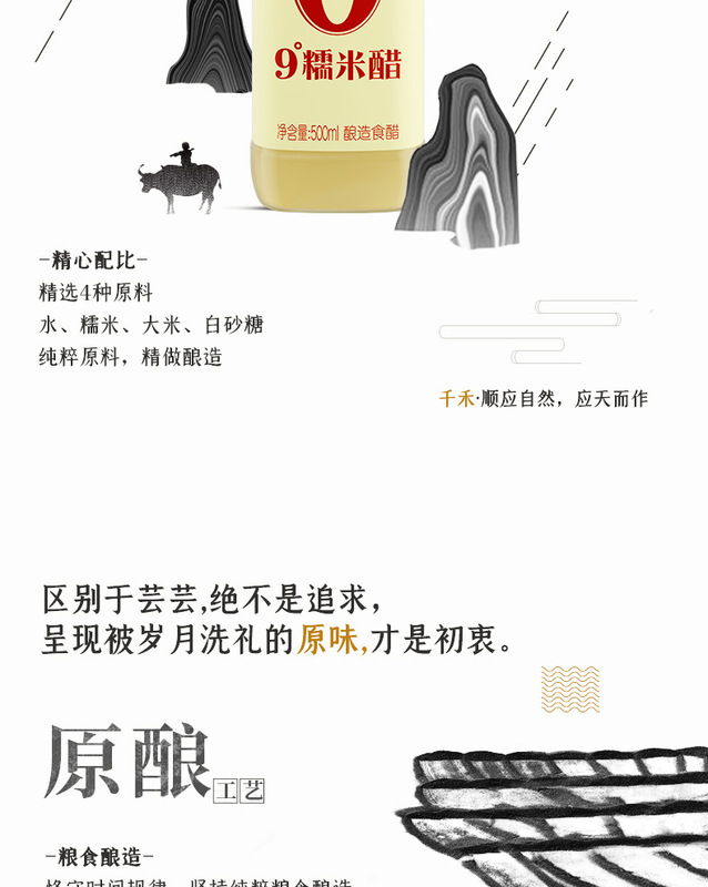 - Packaging Specification: Qianhe 9-degree Glutinous Rice Vinegar 500ml