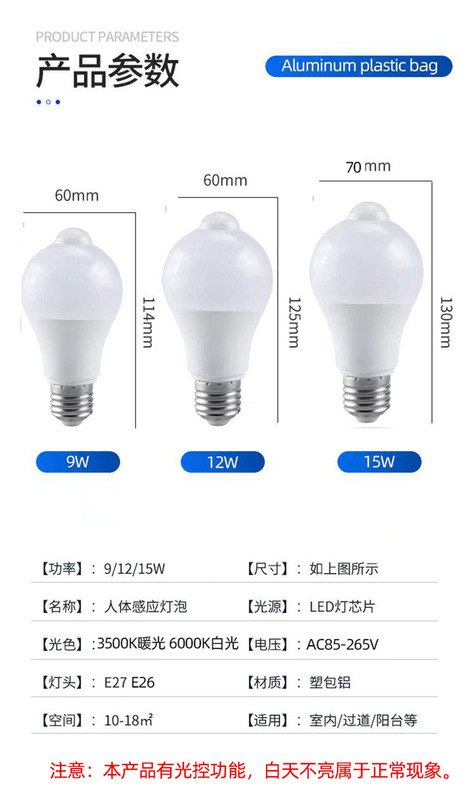 - Color temperature: 6500K (Cool White) E27