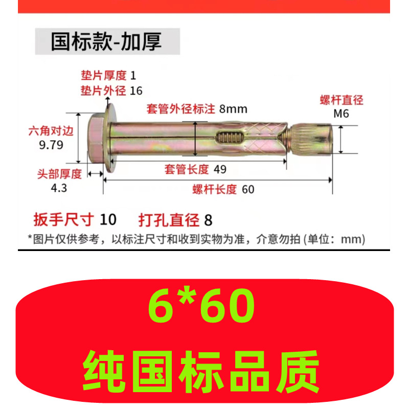 - 規格型號:M6*8*60(2000支/箱)