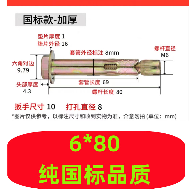 - 規格型號:M6*8*80(1600支/箱)