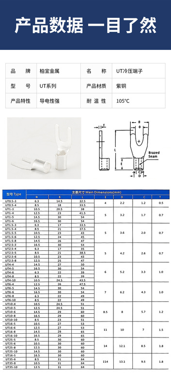 - Model: Brass UT35-10 Copper 50 pcs
