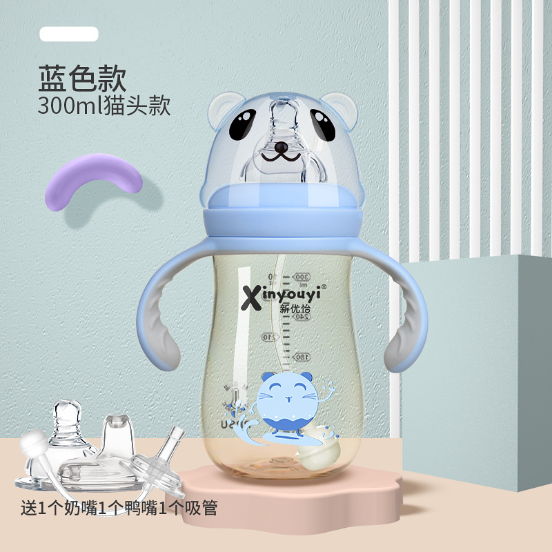 - Capacity: 【3-use bottle】300mL Blue Cat Design (Includes Nipple + Duckbill + Straw)