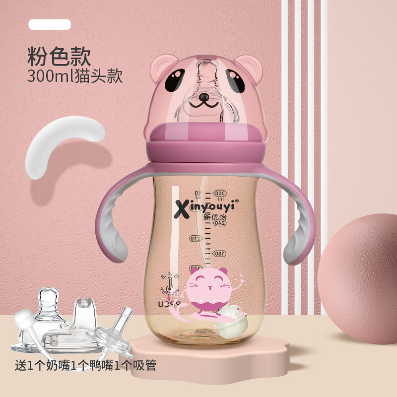 - Capacity: 【3-use bottle】300mL Pink Cat Design (Includes Nipple + Duckbill + Straw)