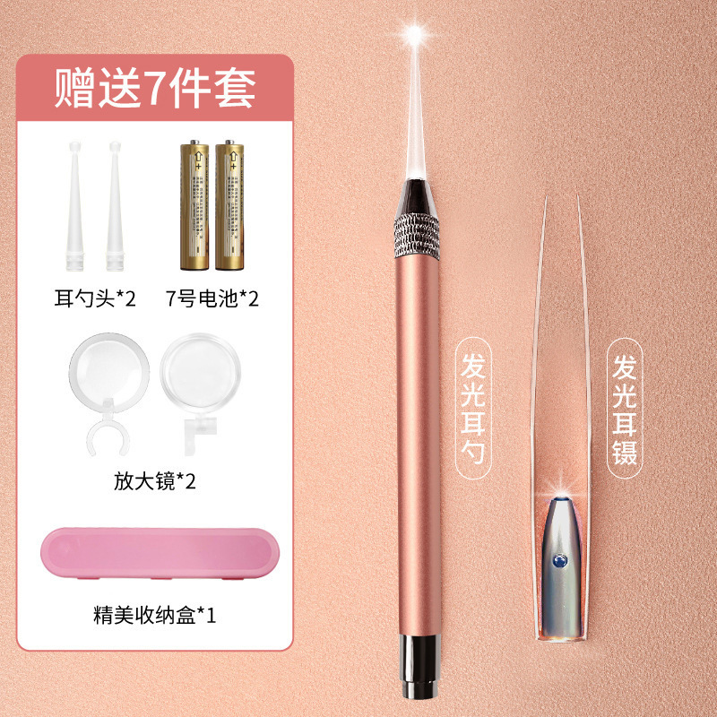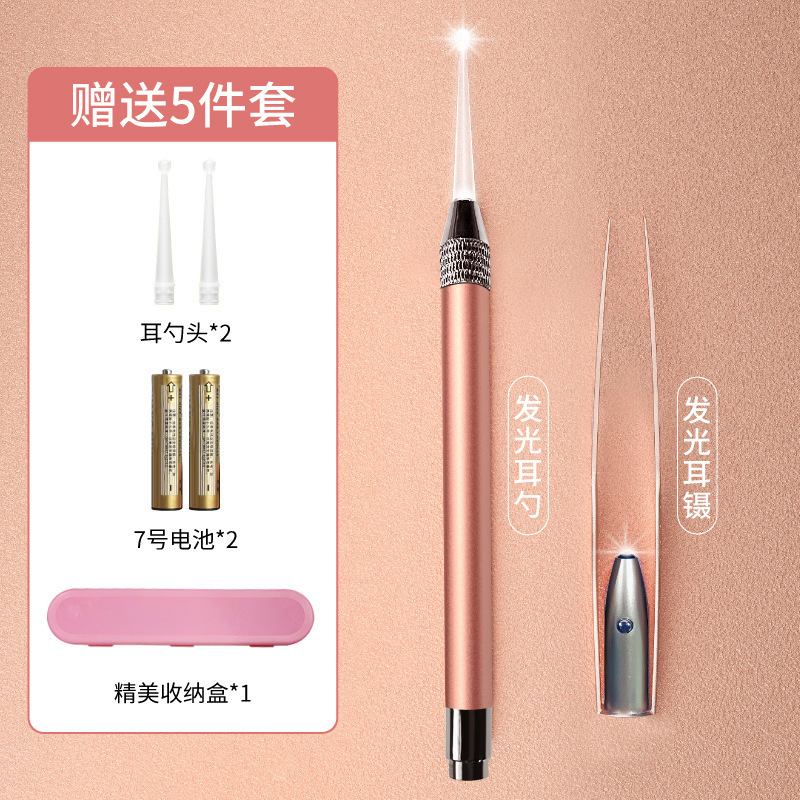 - Specification: Rose Gold Light Emitting Ear Spoon + Full Set of Accessories