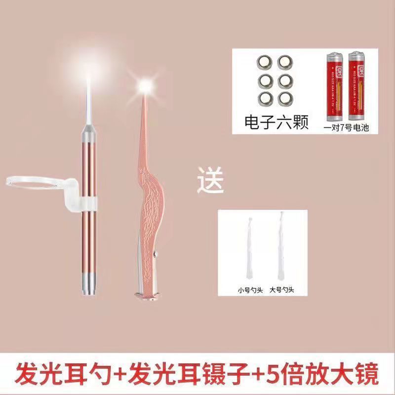 - Specification: Light Emitting Ear Spoon + Light Emitting Ear Tweezers + 5x Magnifying Glass