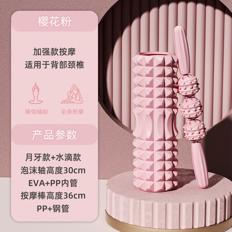 - Specification: Crescent Model Set Pink [30cm Foam Roller + Droplet Massage Stick]