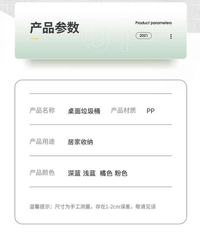 - Plastic new material ratio: 100% new material