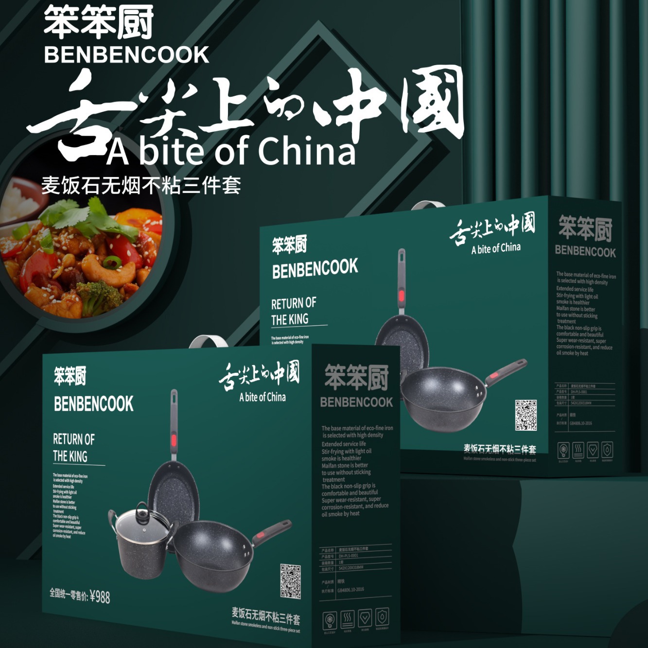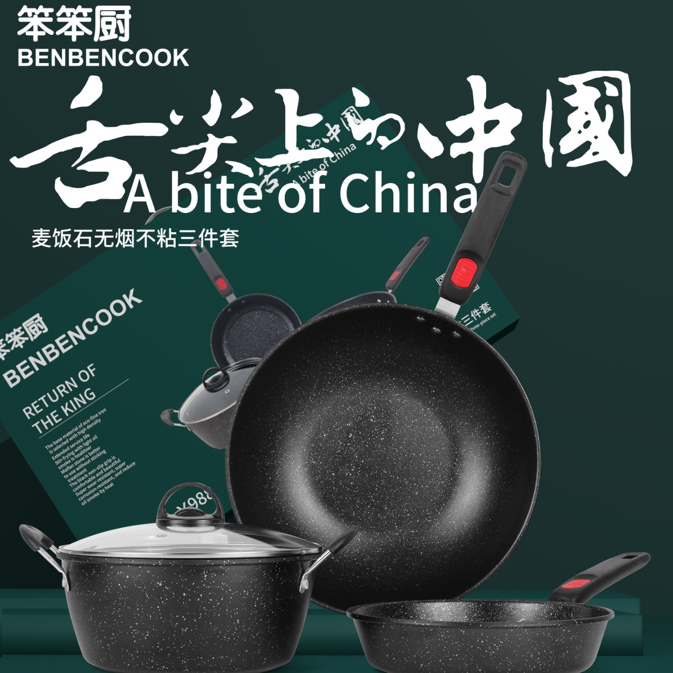- Specification: Rice stone non-smoking non-stick three-piece set