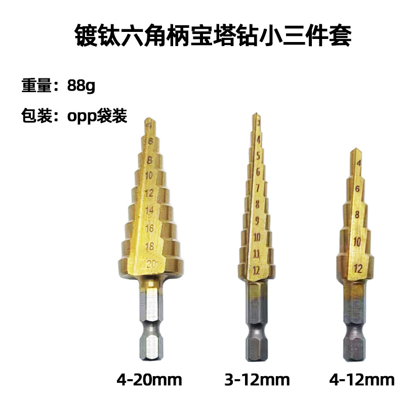 - Model: Step Drill Small 3-Piece Set with OPP Bag (88g)