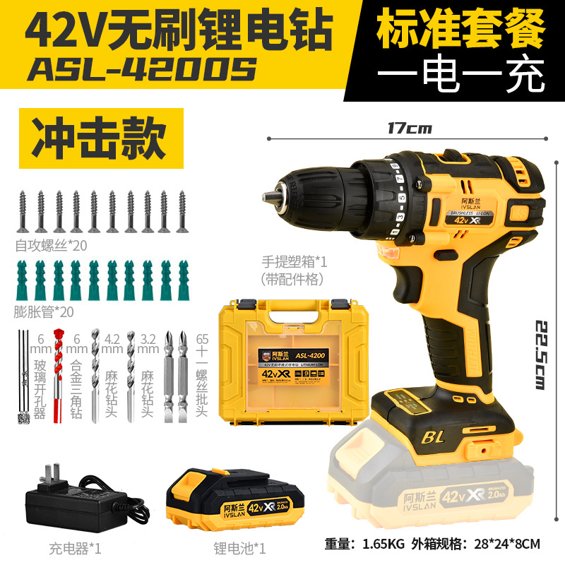 - Model: 42V High-Torque Lithium Impact Drill ASL-4300 (One Charger for One Battery) 4.0 Standard Set
