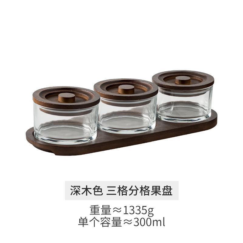 - Specification: Dark Wood Color Three-Compartment Divided Fruit Bowl