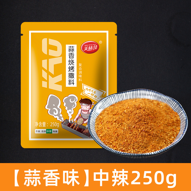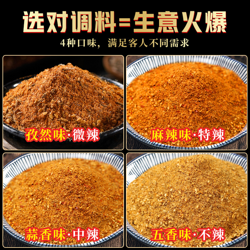 - Raw materials and ingredients: edible salt, garlic powder, white sesame seeds, chili powder, white sugar, edible corn starch, monosodium glutamate, spices.