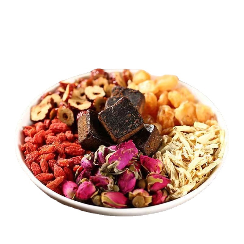 - Ingredients and Components: Black sugar, ginger slices, red dates, longan, goji berries, rose