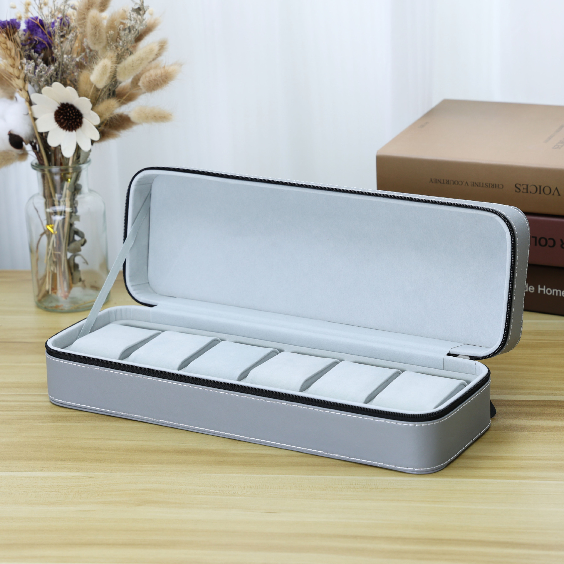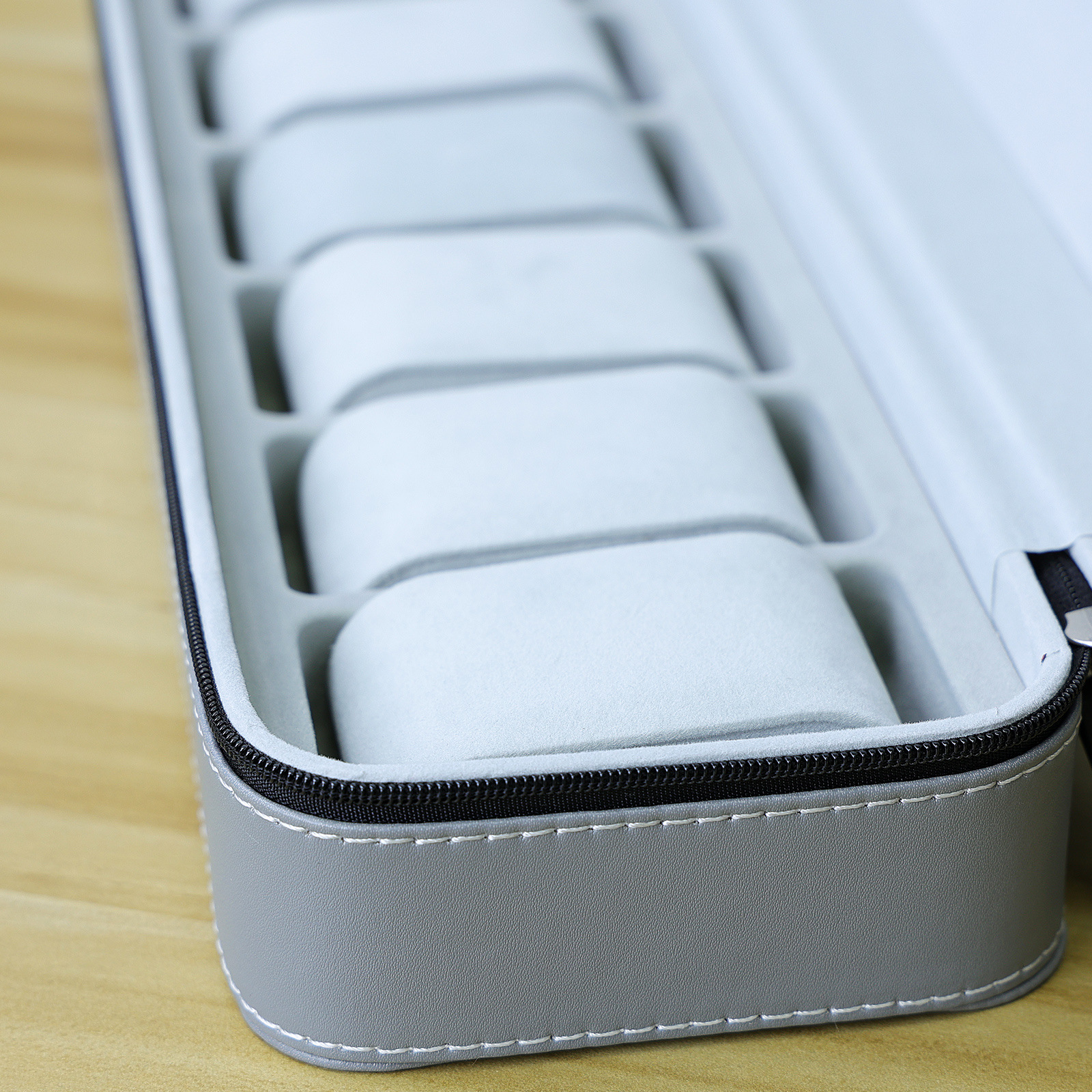 - 規格:灰色皮革拉鏈款表包6表位