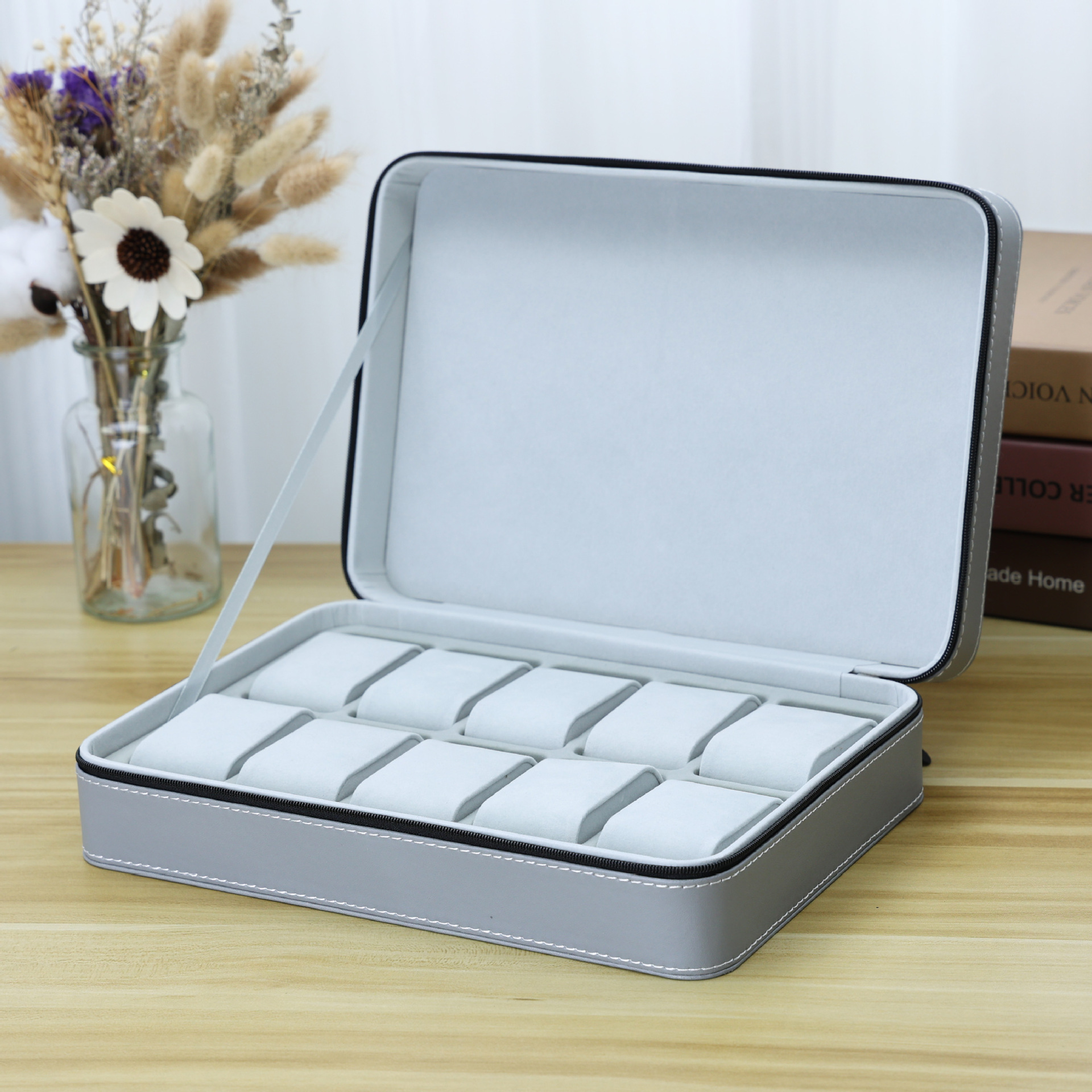 - 規格:灰色皮革拉鏈款表包10表位