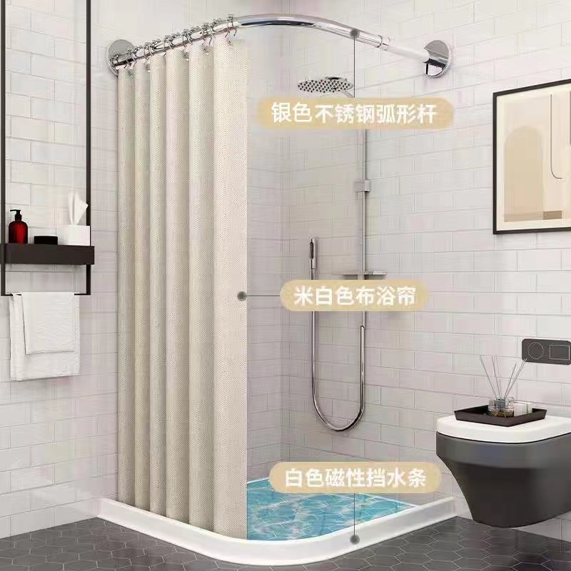 - Specification: Telescopic C Rod + Magnetic Shower Curtain + Magnetic Water Barrier