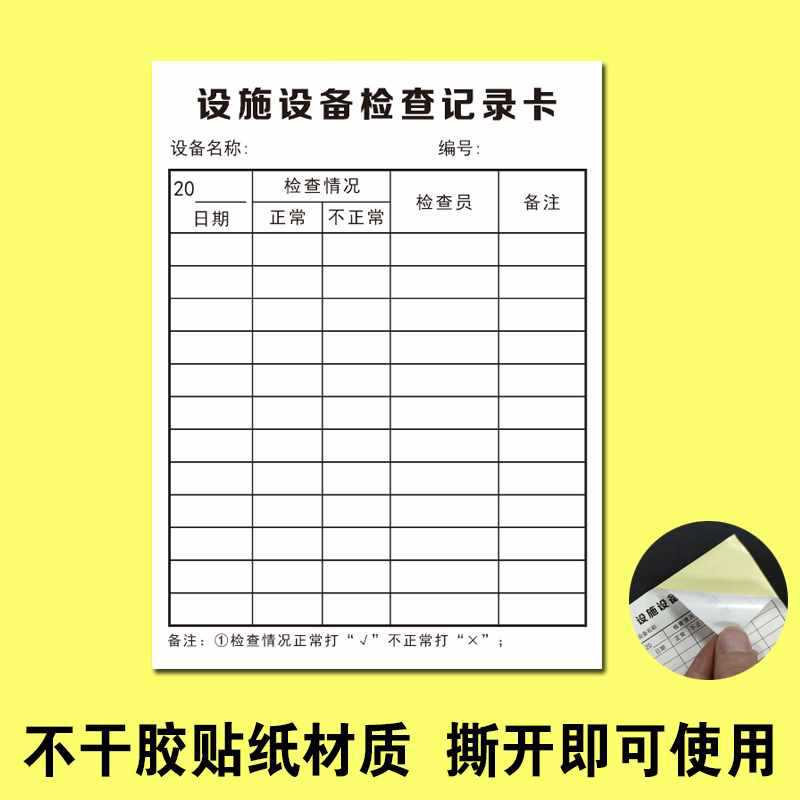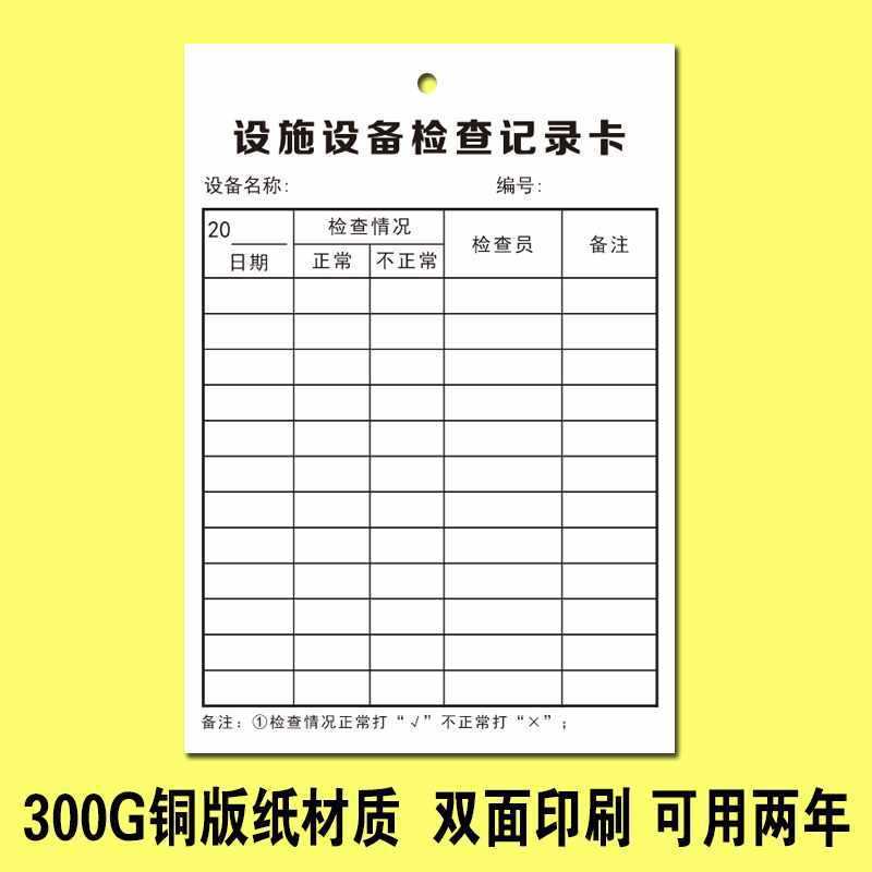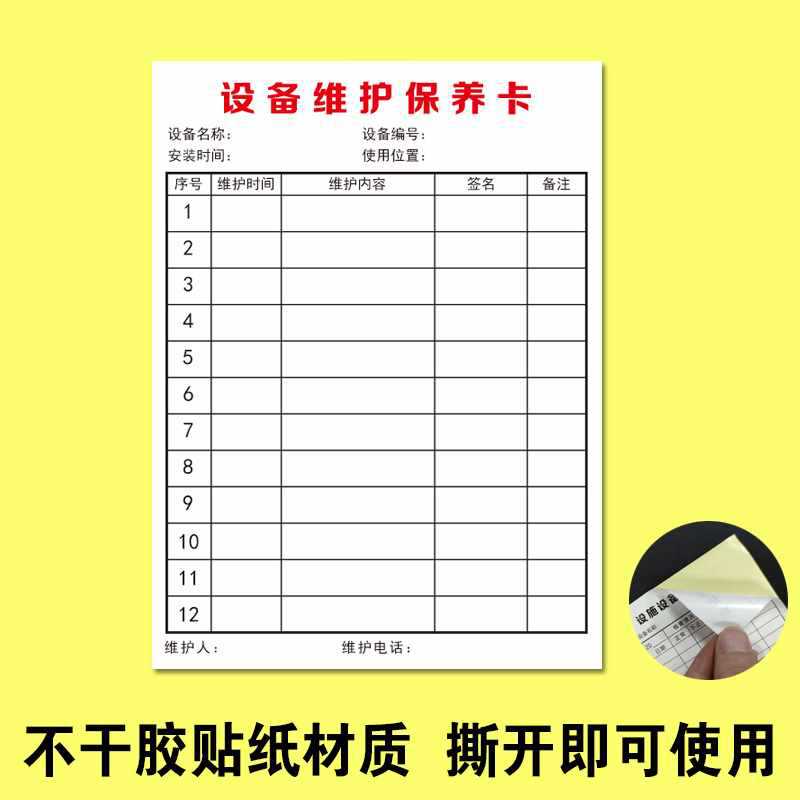 - 規格型號:設備維護保養卡100張9x13cm