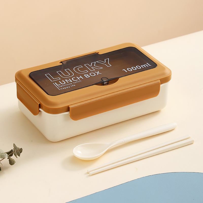 - Specifications: Brown-white lunchbox + utensils