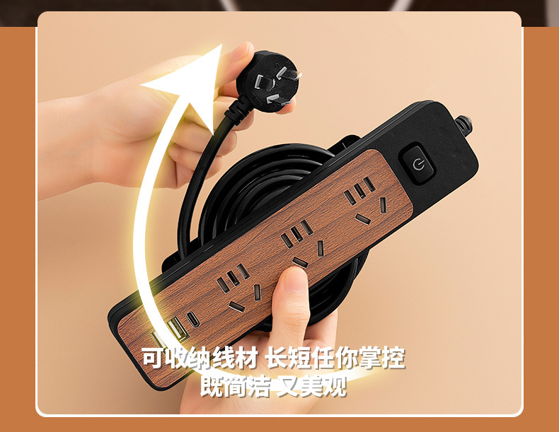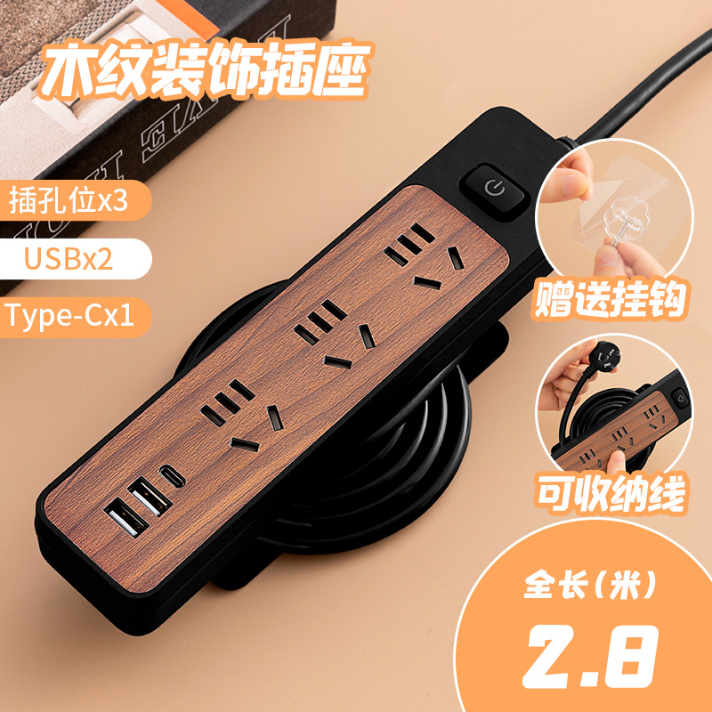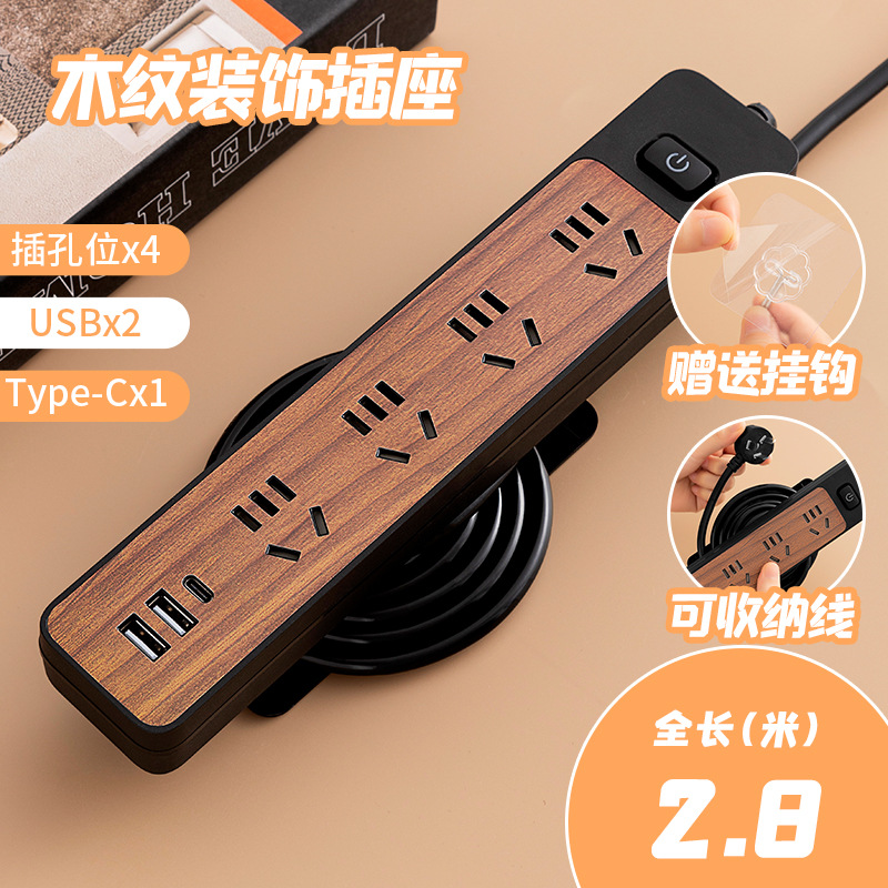 - 規格型號:繞線木紋黑米4位+USB-2.8米