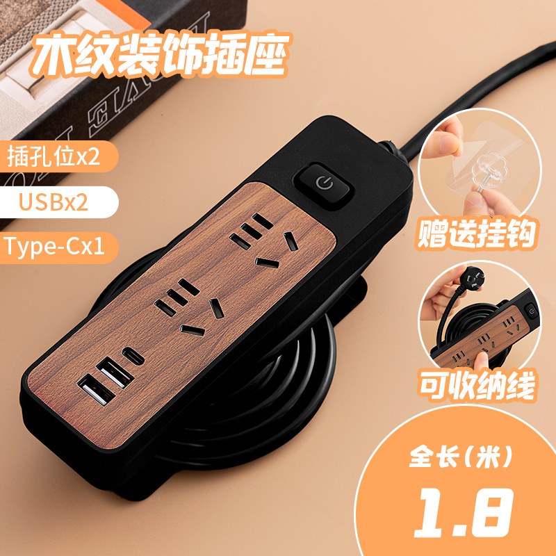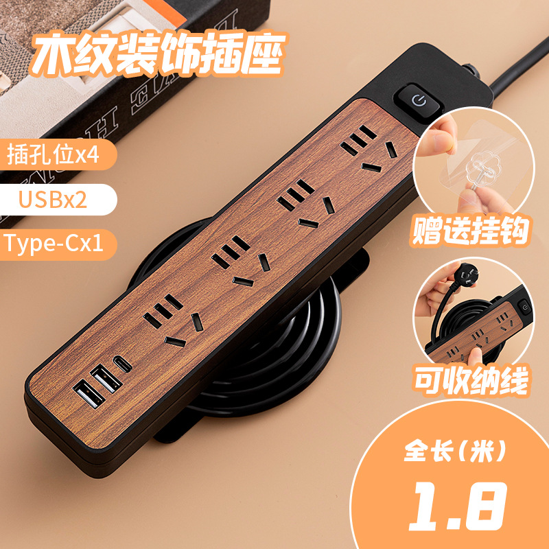 - 規格型號:繞線木紋黑米4位+USB-1.8米