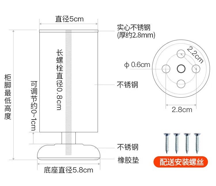 - Name: Adjustable stainless steel cabinet leg
