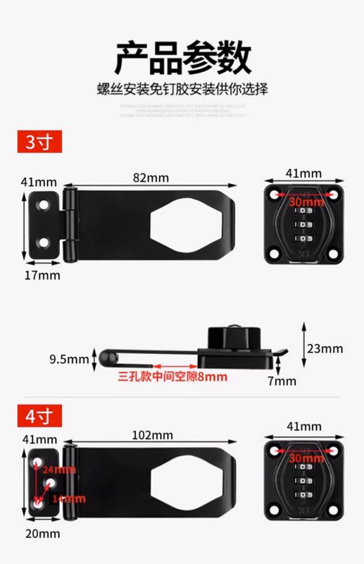 - 規格:3寸二孔底片密碼鎖啞黑【粘釘兩用】