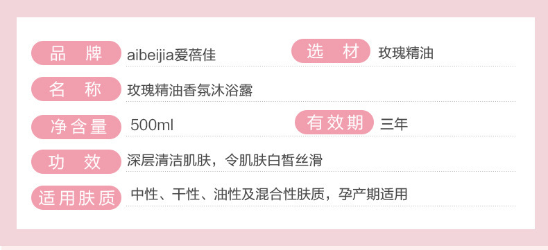 - Net Content: Rose Essential Oil Shampoo 500ml