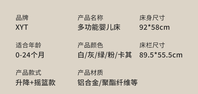 - Specification: BJJ-705 +蚊帐+框+收纳袋+尿布台