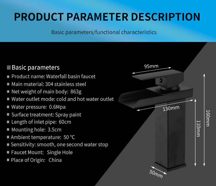 - Specification: Short Black Straight Curve Waterfall Faucet