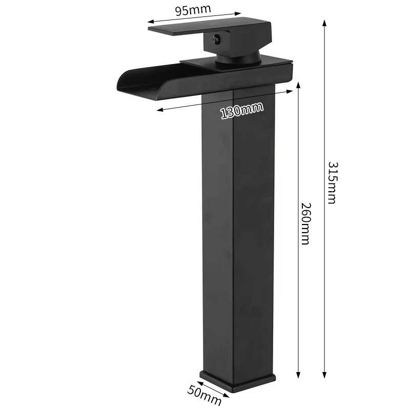 - Specification: Tall Black Straight Curve Waterfall Faucet