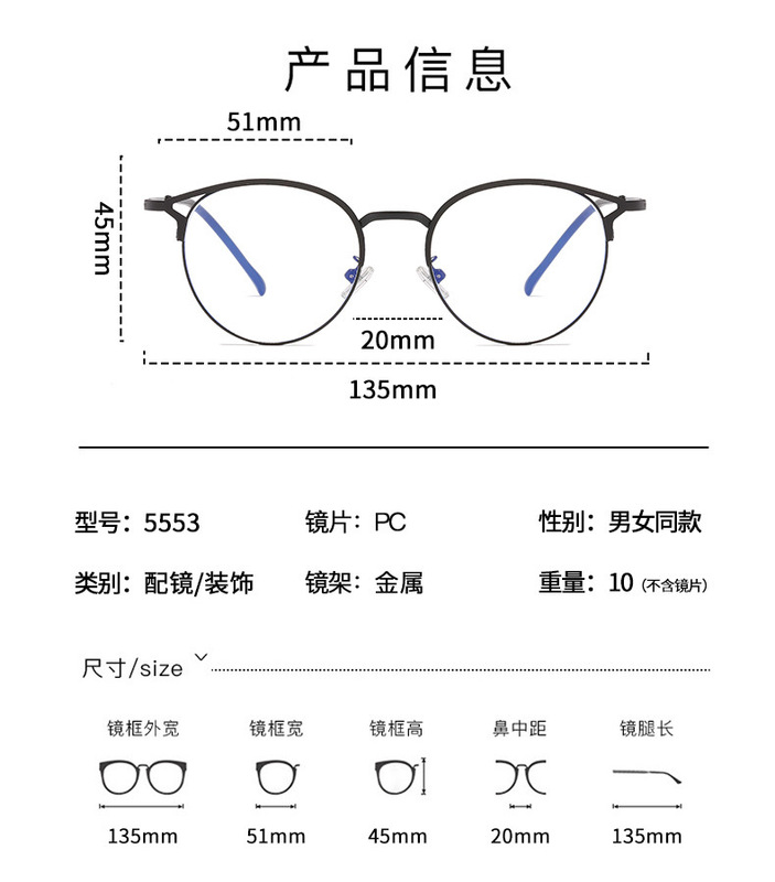 - 眼鏡款式:圓框