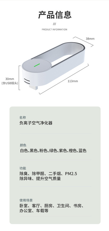 - Product Specifications: USB Negative Ion【Deodorizing and Smoke Removal】
